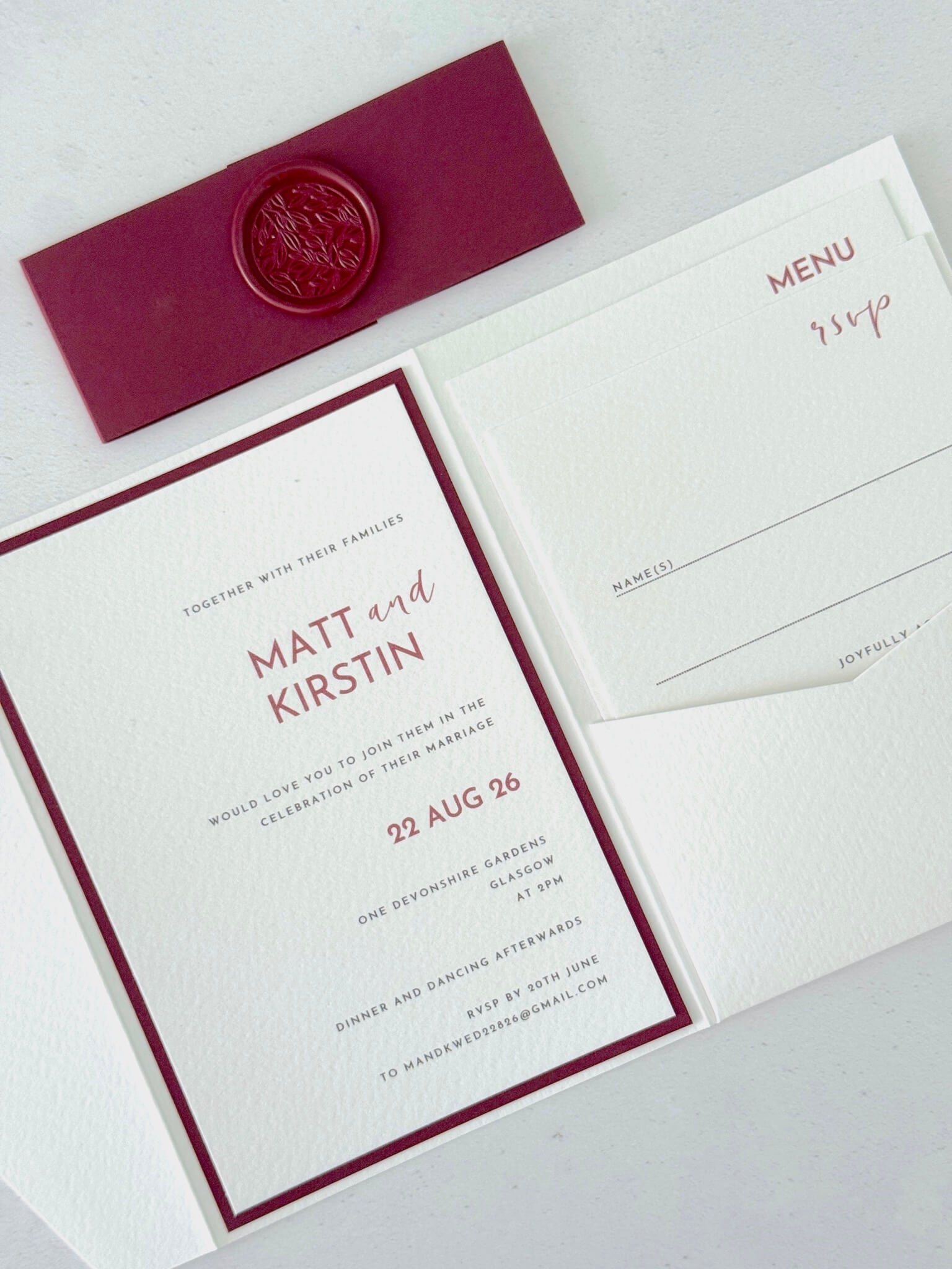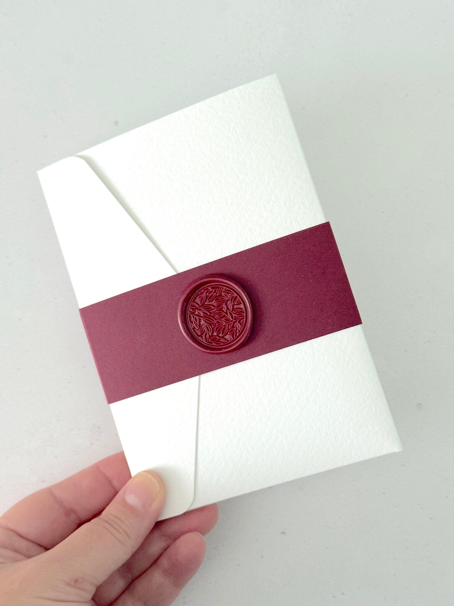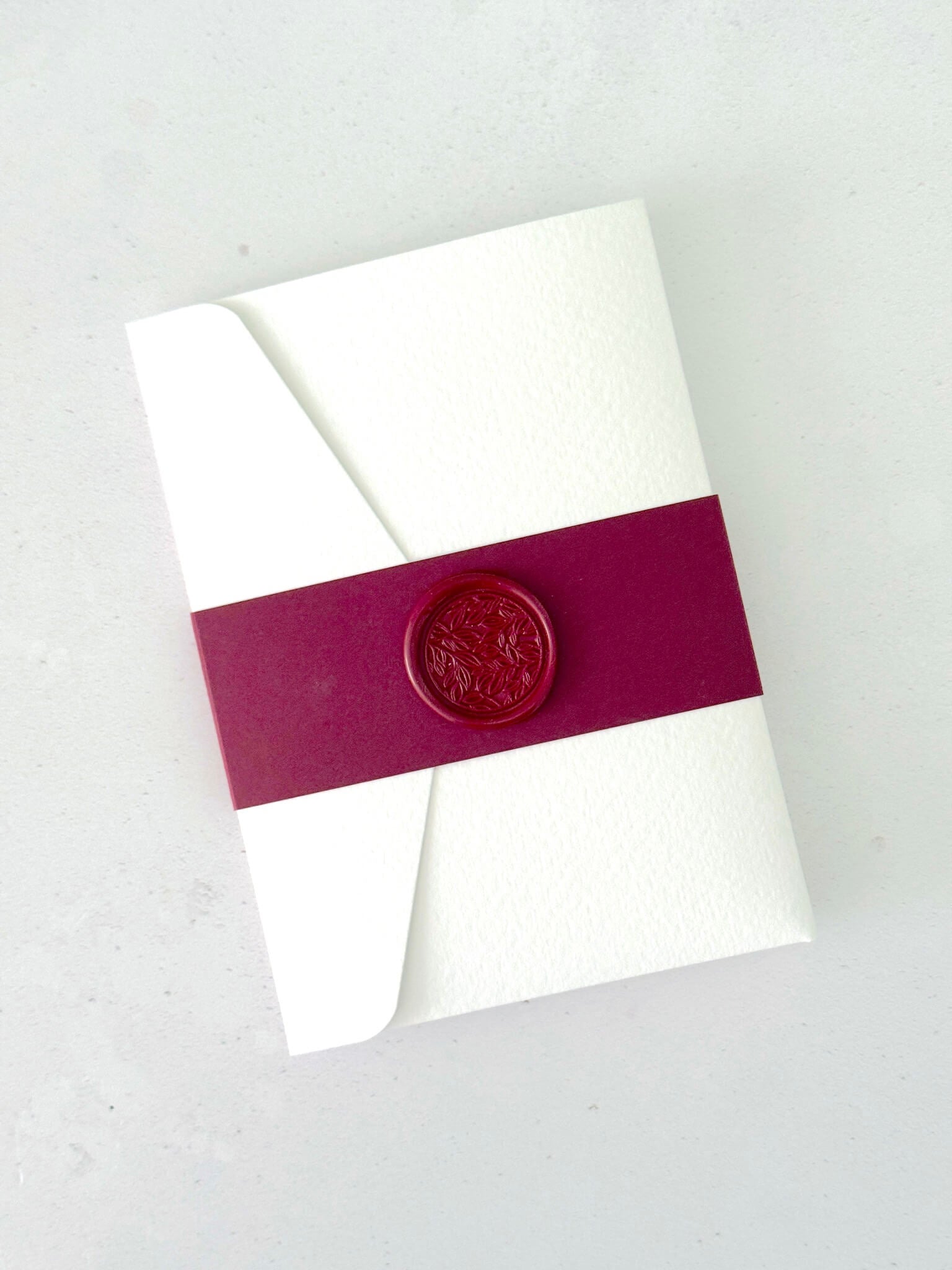 ZOE Pocketfold & Belly Band Wedding Invite in Burgundy