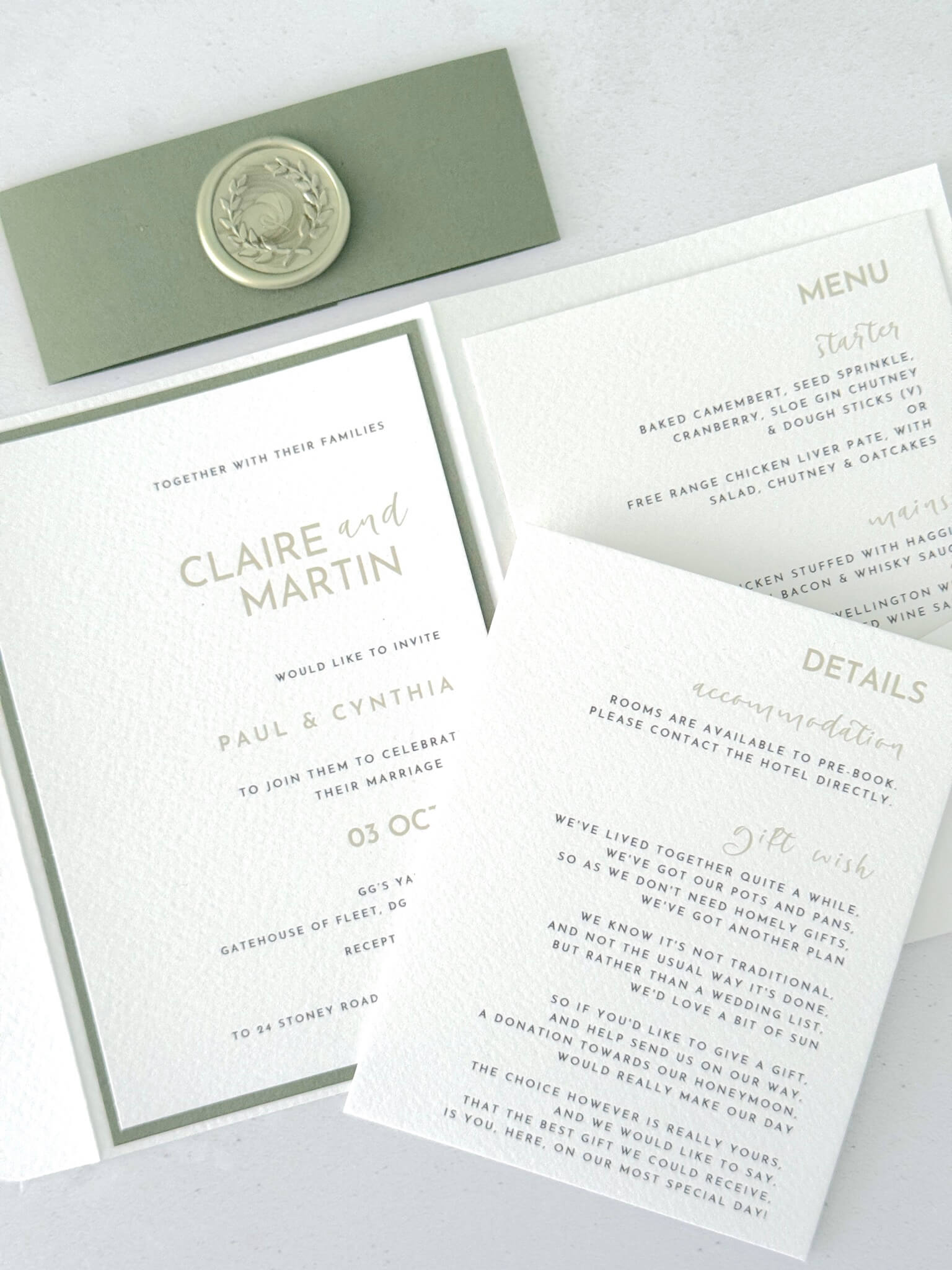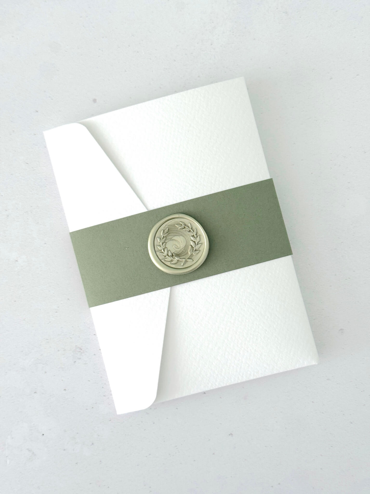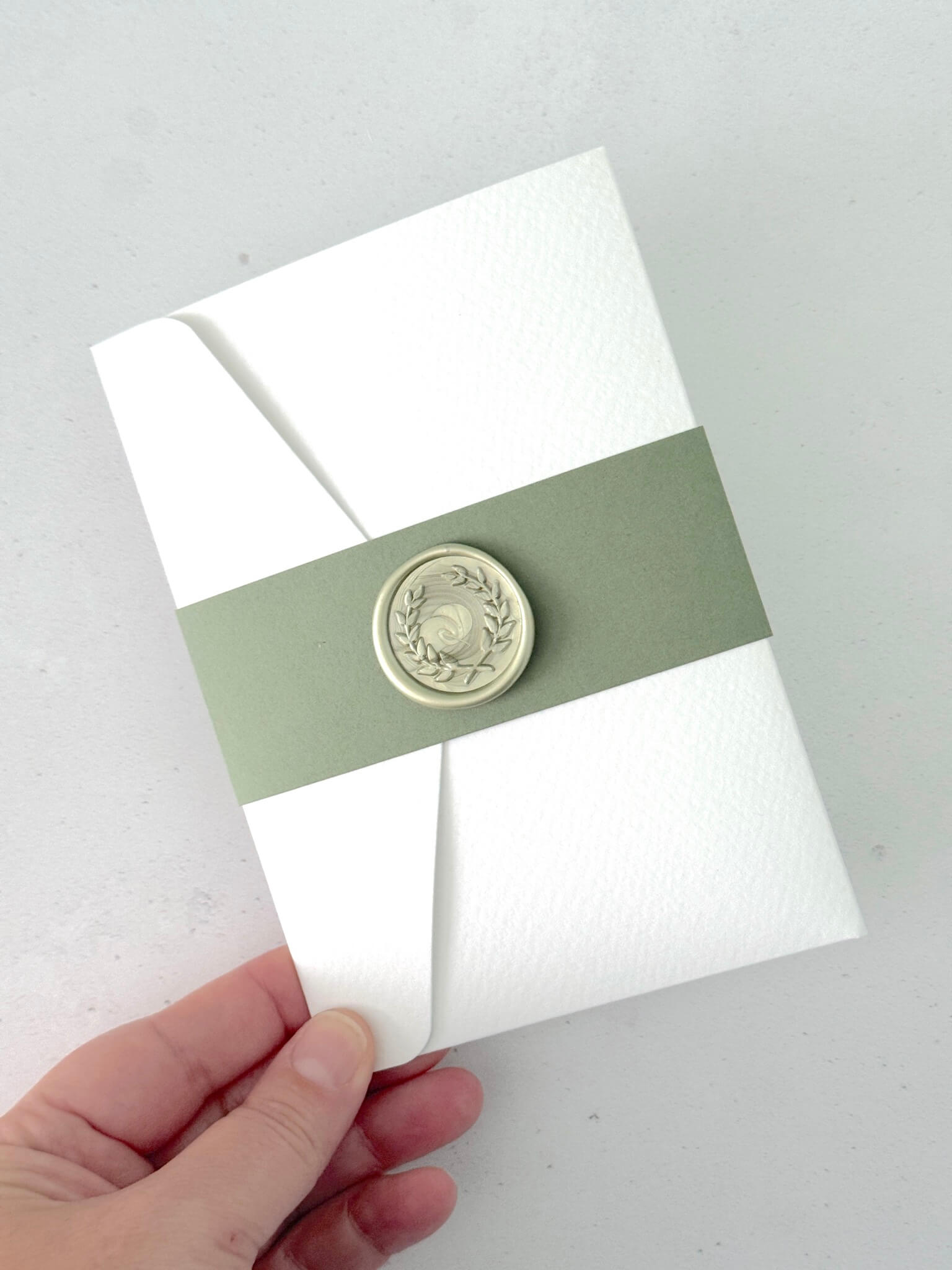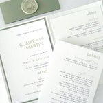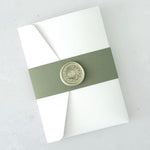 ZOE Pocketfold & Belly Band Wedding Invite in Sage Green